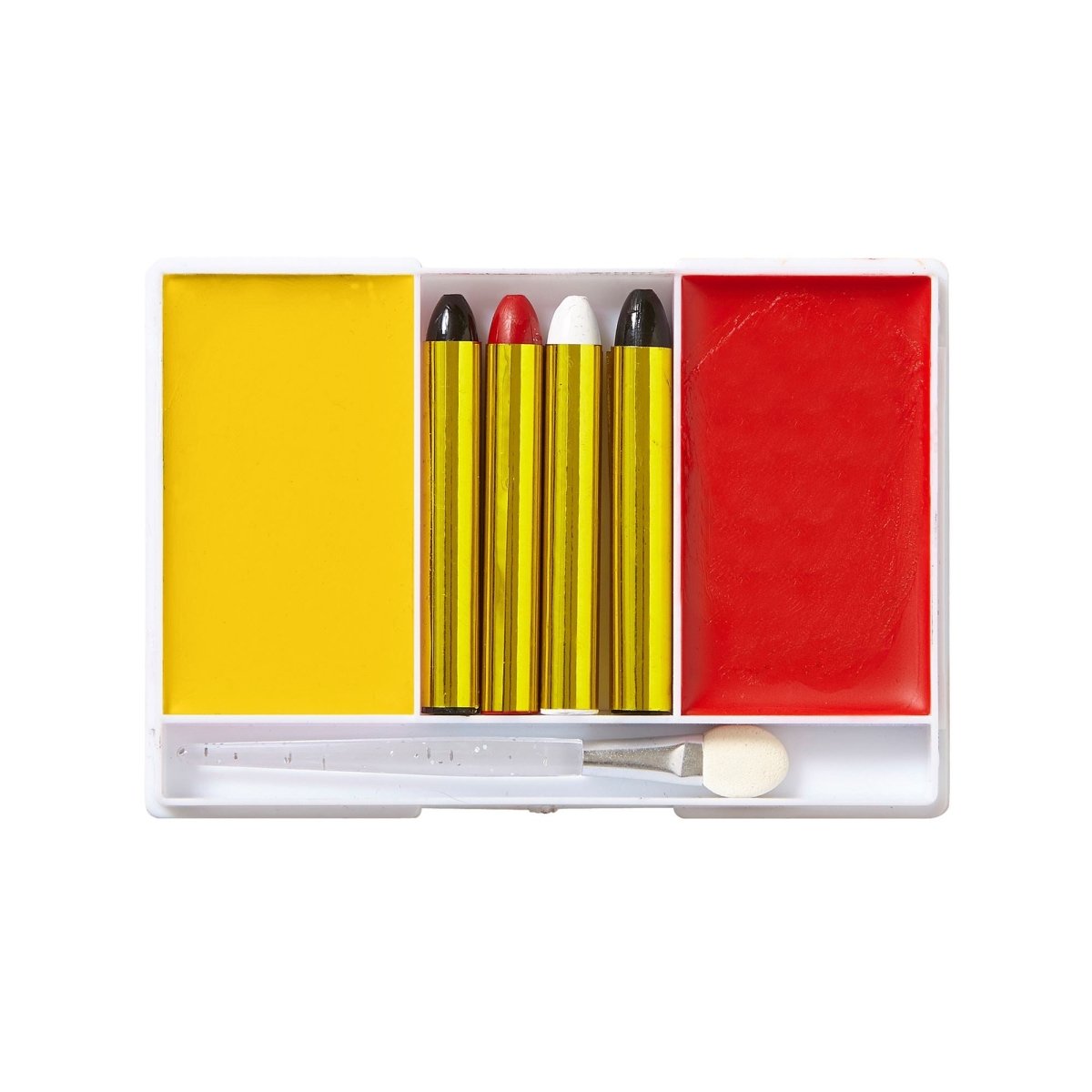 Maak een griezelige duivel-look compleet met deze kleurrijke schminkset. Perfect voor Halloween, verkleedfeesten of theater.