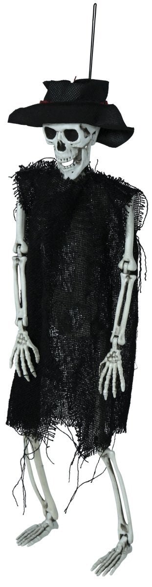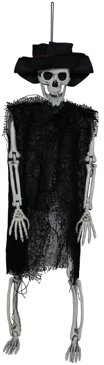 Geef je Halloween-feest een griezelige en opvallende uitstraling met dit Skelet met Hoed van 47 cm. Het angstaanjagende ontwerp maakt het een ideale hangdecoratie.