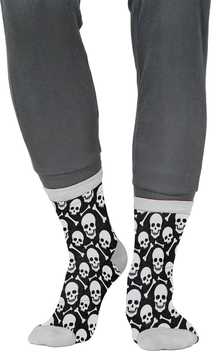 Maak je Halloweenoutfit compleet met deze sokken met schedelmotief. Perfect voor feestjes, trick-or-treat of gewoon voor een griezelige touch in je dagelijkse outfit. Gemaakt van katoen, bieden de sokken comfort en ademend draaggemak voor de hele dag.