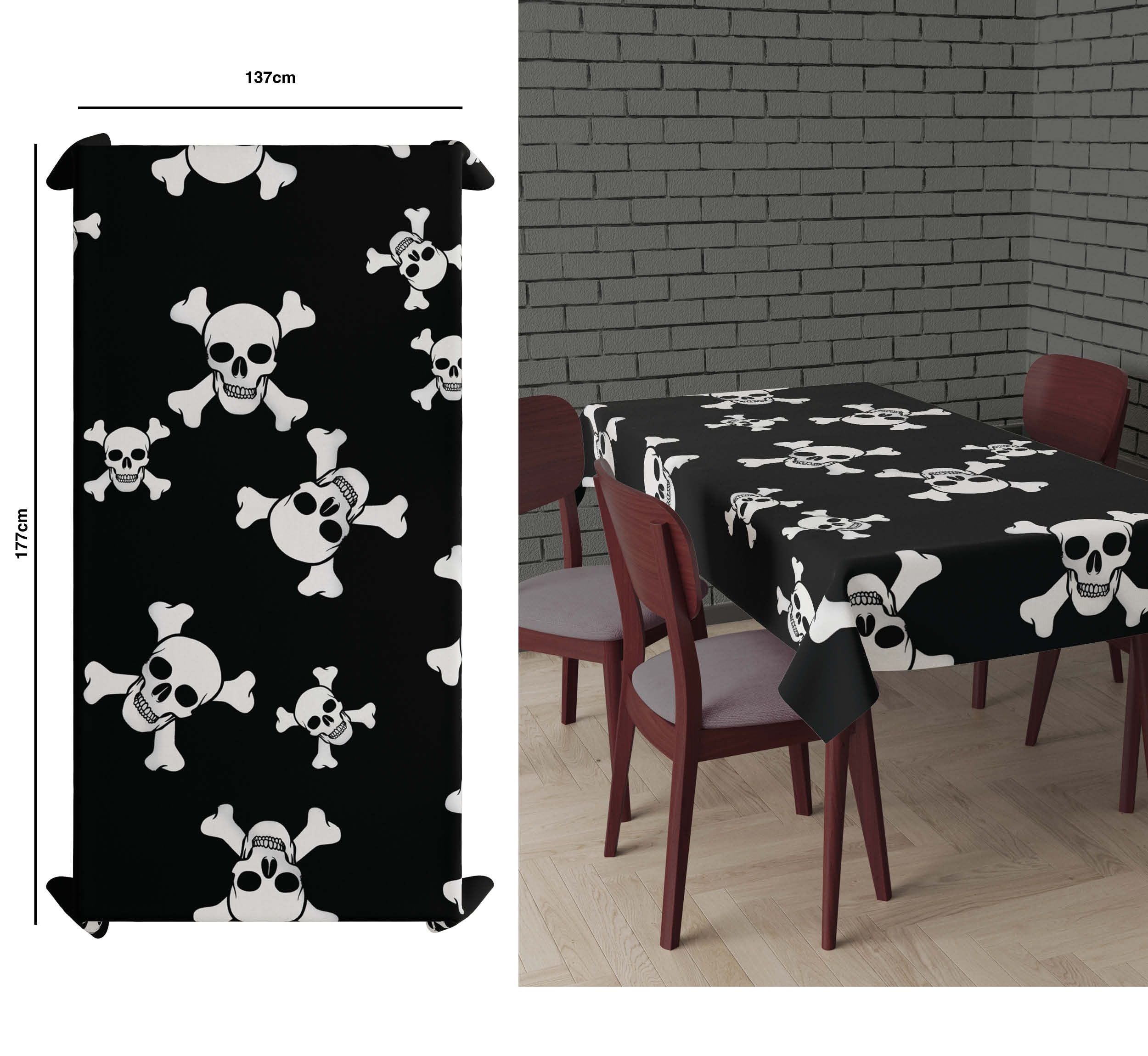 Halloween Tafelkleed Doodshoofd 2,74m