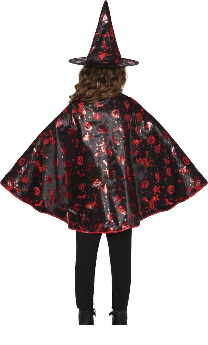 Halloween Verkleedset Zwart Rood Meisje Heks 2 delig