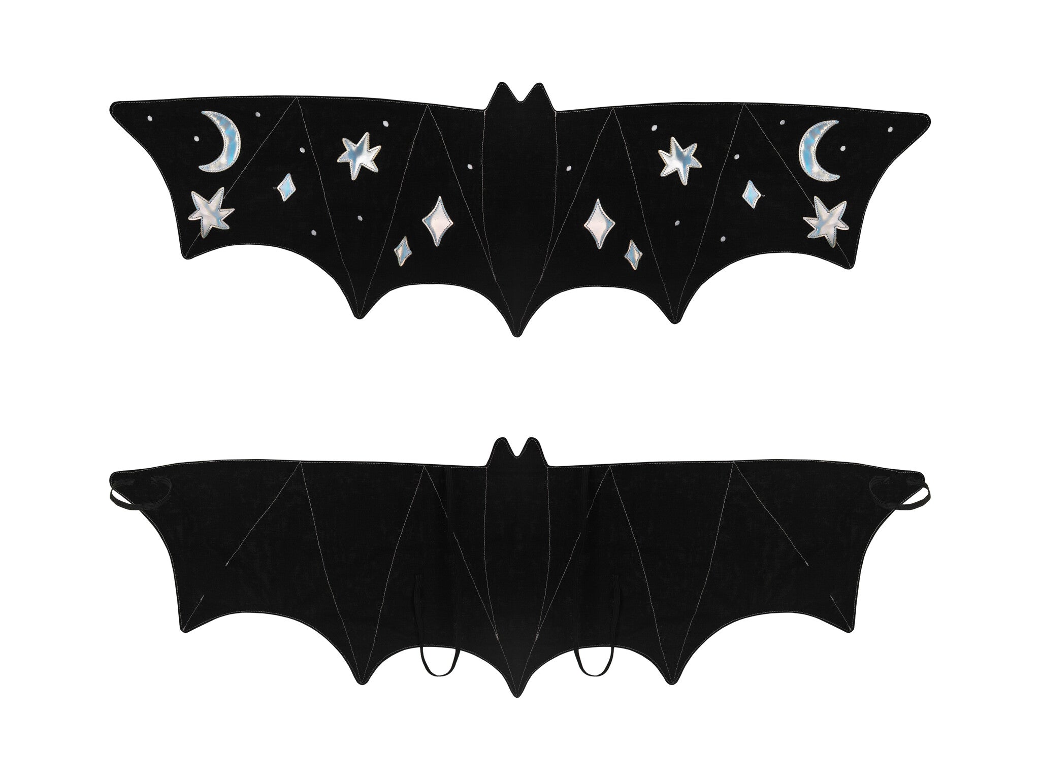 Outfit - vleermuisvleugels in zwart met zilveren elementen. Bedoeld voor kinderen van 3 - 7 jaar.