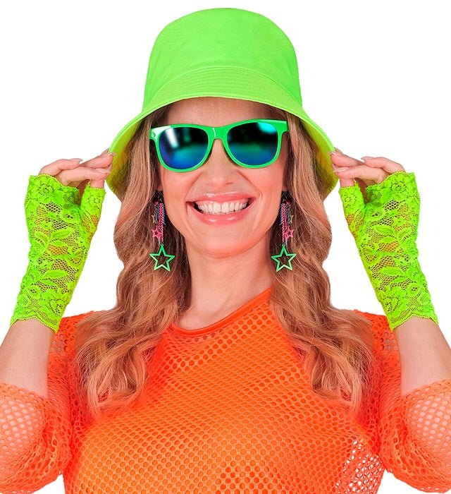 Met deze neon groene kanten handschoenen maak je jouw look helemaal af.