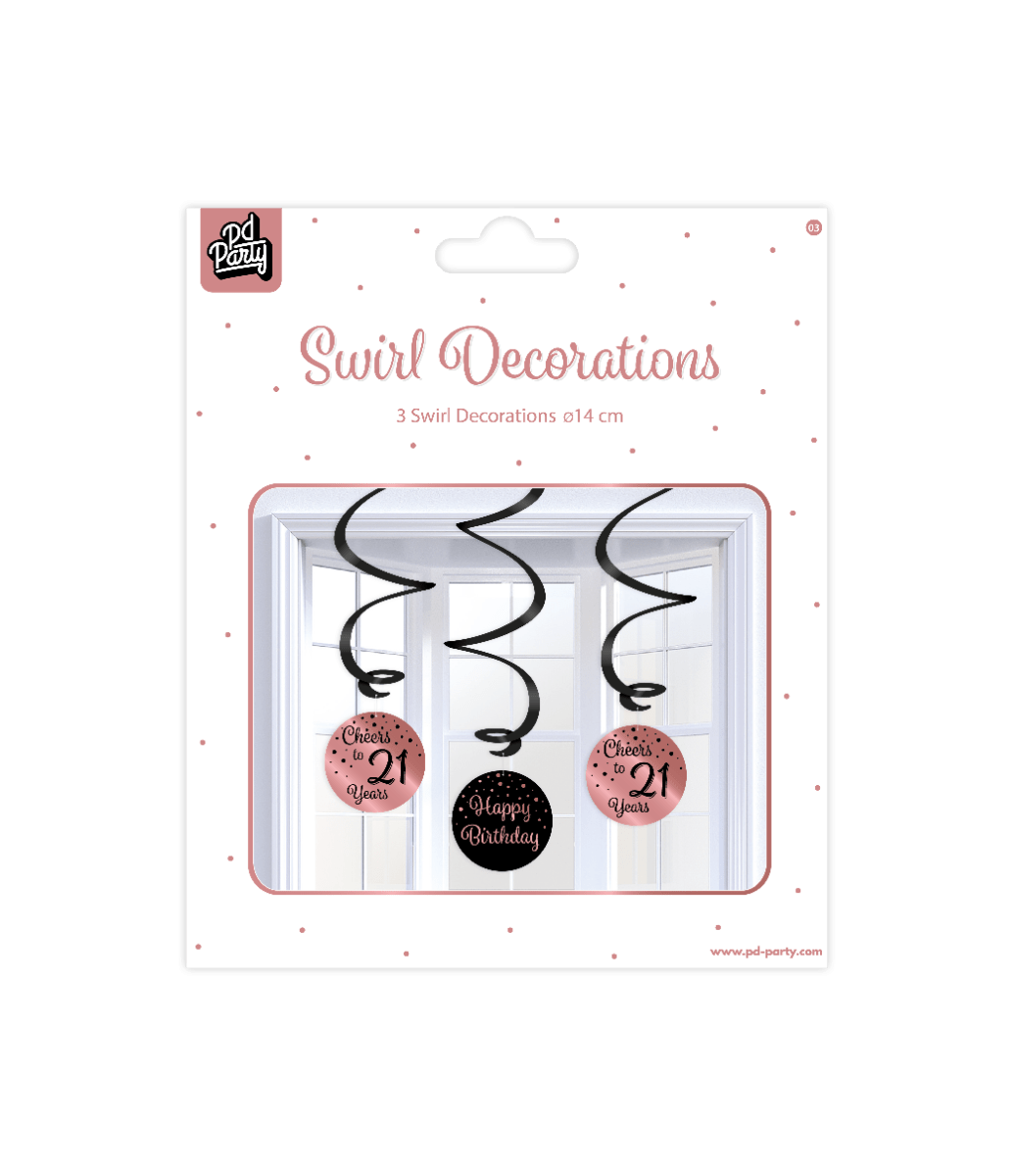 Hangdecoratie 21 Jaar Happy Birthday Zwart Roze 17cm 3st