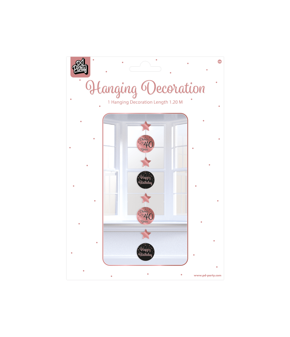 Hangdecoratie 40 Jaar Roze Zwart 20,5cm