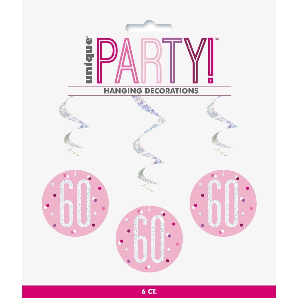 Hangdecoratie 60 Jaar Roze 81cm 6st
