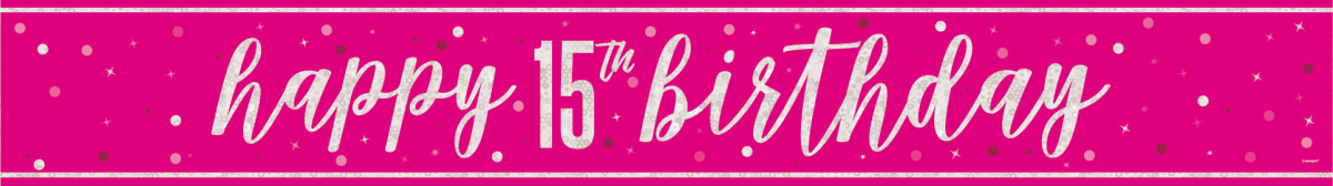 Happy Birthday Banner Roze 15 Jaar 2,74m
