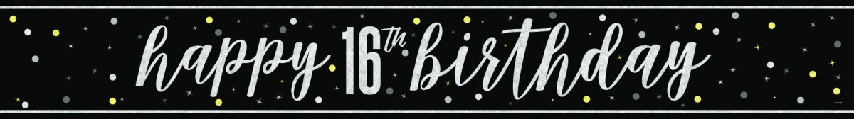 Happy Birthday Banner Zwart 16 Jaar 2,74m