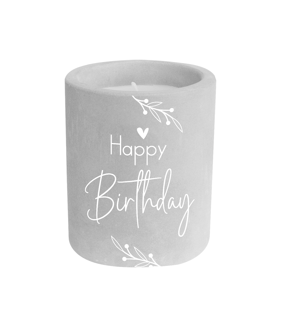 Happy Birthday Cement Kaars Grijs 8cm