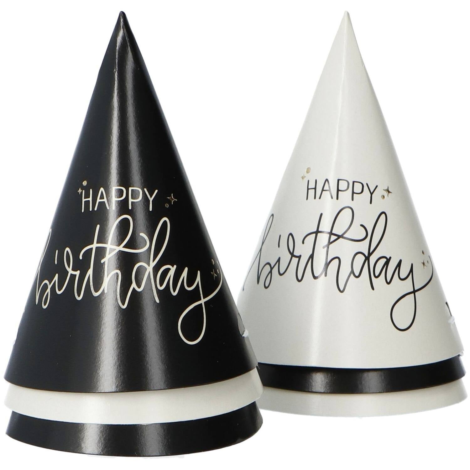 Happy Birthday Feesthoedjes Zwart 6st