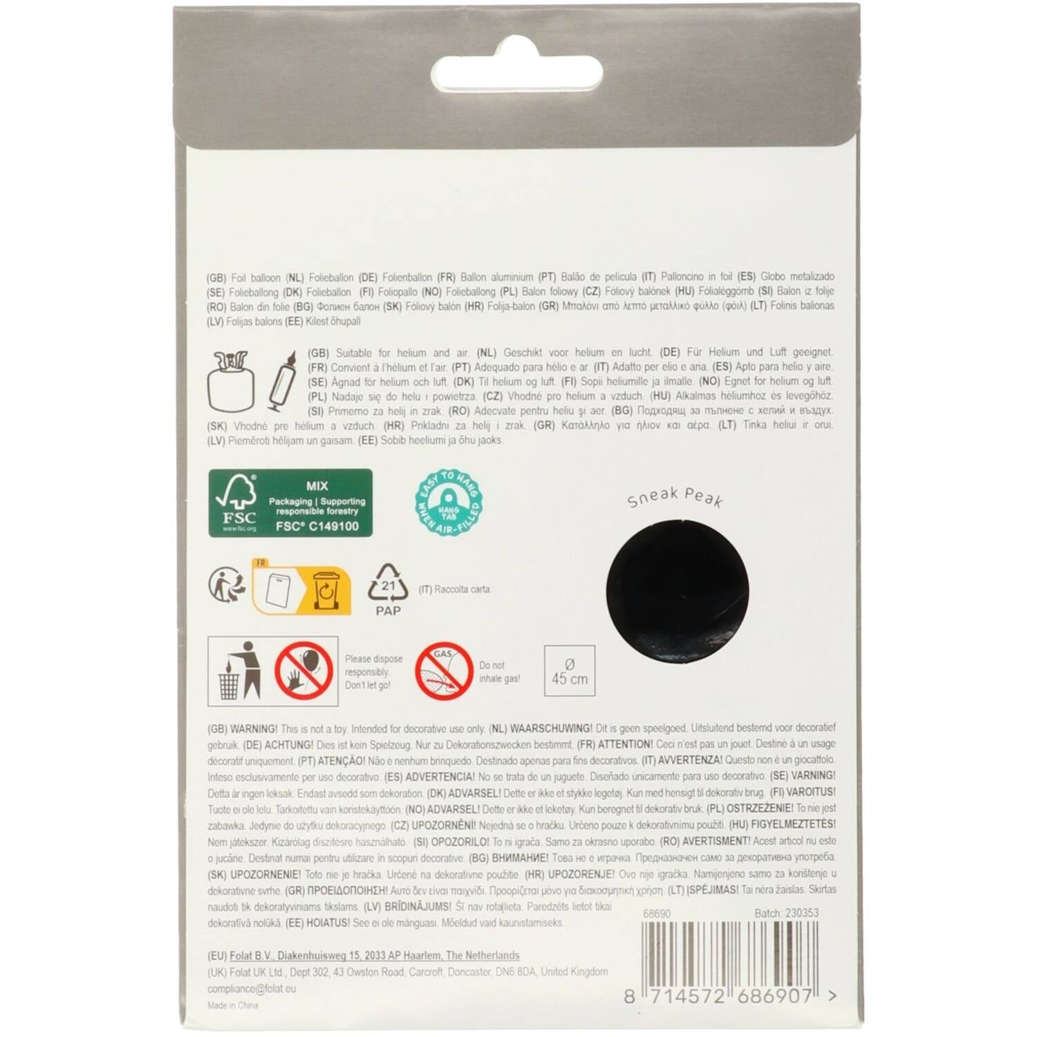 Happy Birthday Helium Ballon Zwart Wit Leeg 45cm