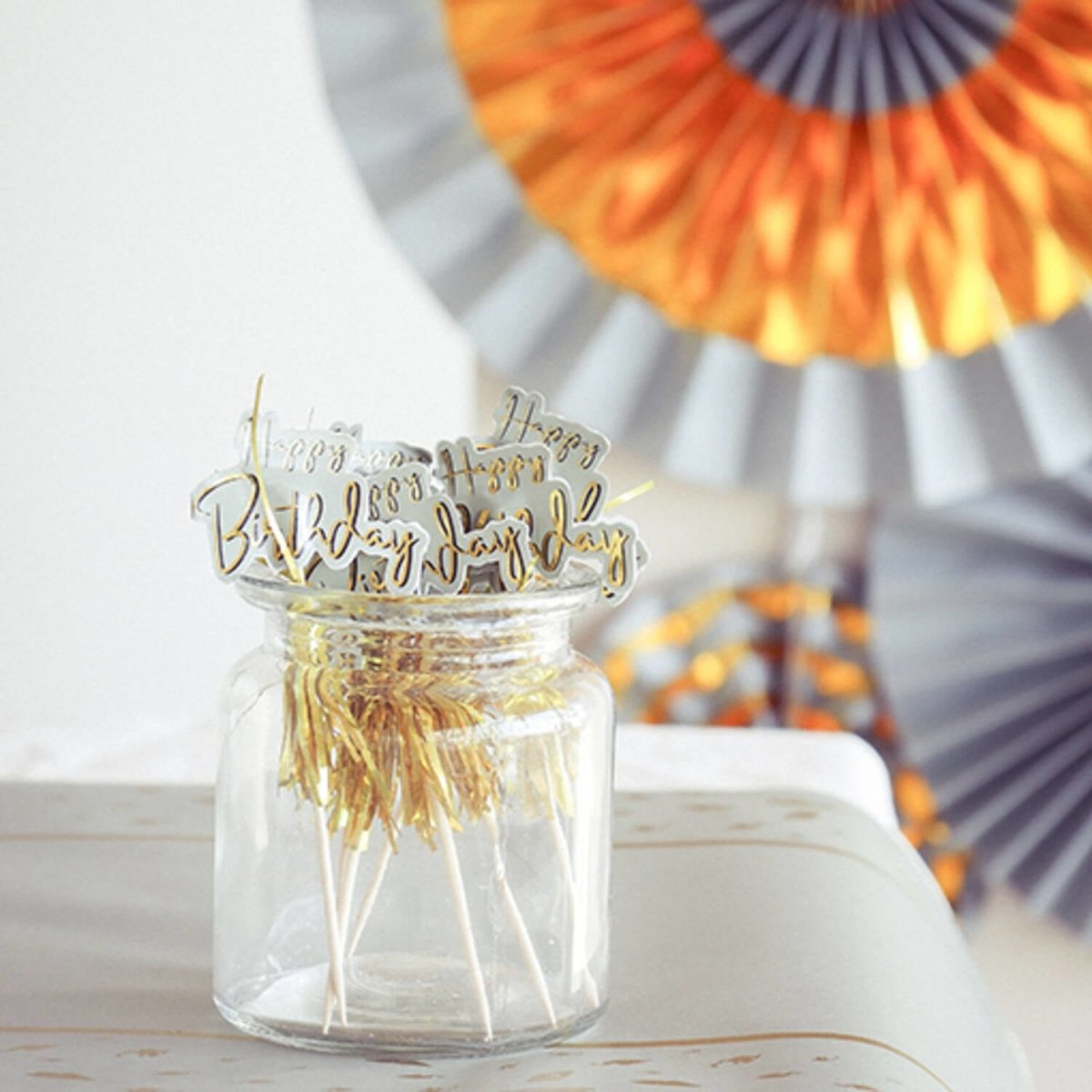 Happy Birthday Parasol Prikkers Golden Dawn 12cm 12st