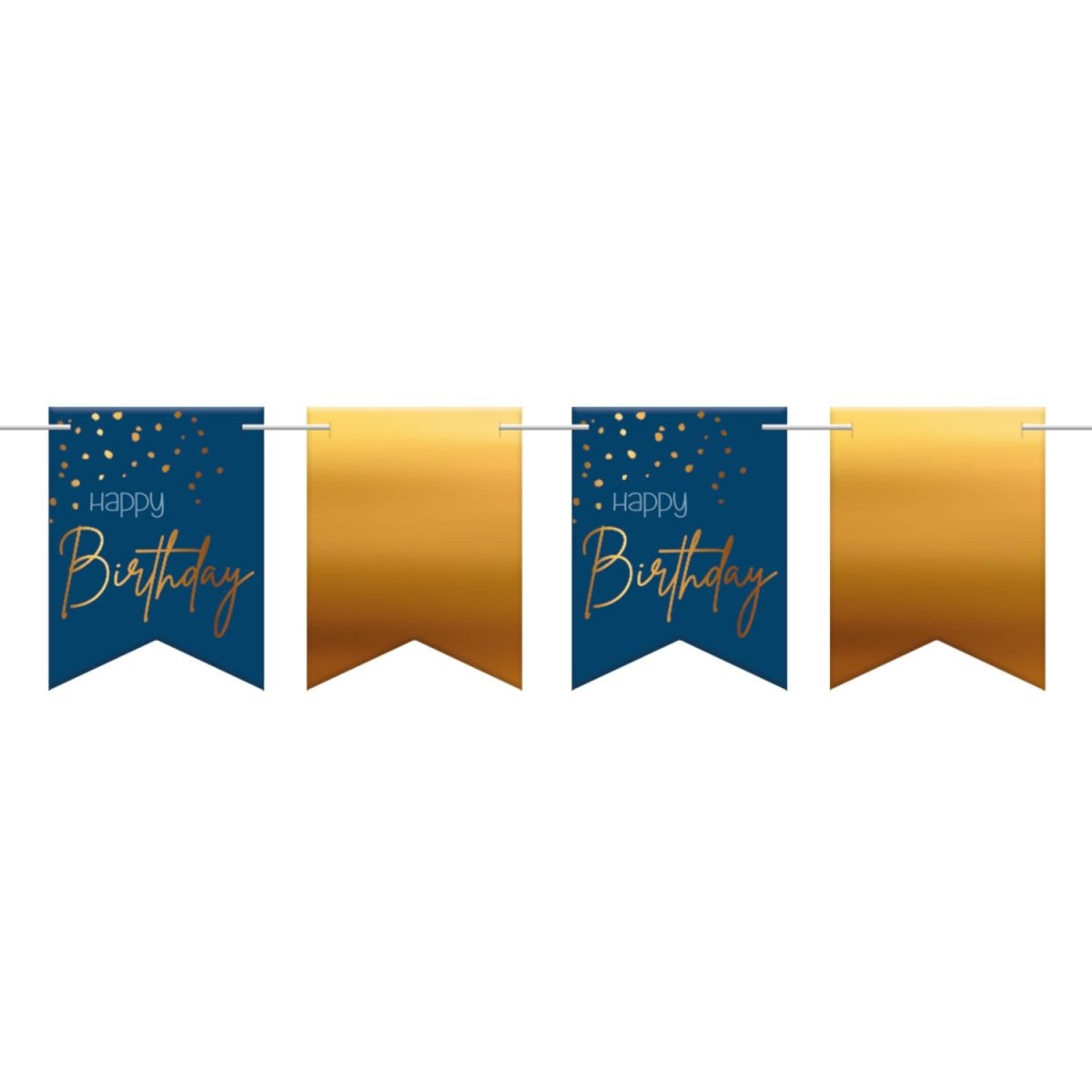 Vlaggenlijn Elegant True Blue - 6 meter. Inhoud: 1 vlaggenlijn van 6 meter. Kleur: Blauw. Bijvoorbeeld te gebruiken tijdens de volgende feestgelegenheid/feestgelegenheden: Verjaardag, Kinderfeestje. De vlaggenlijn is 6 meter lang met 10 vlaggetjes van 23 cm hoog. Het artikel is gemaakt van papier.
