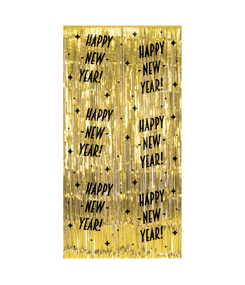 Happy New Year Deurgordijn Goud Zwart