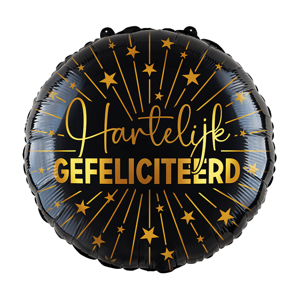Hartelijk Gefeliciteerd Helium Ballon Zwart Goud Leeg 45cm