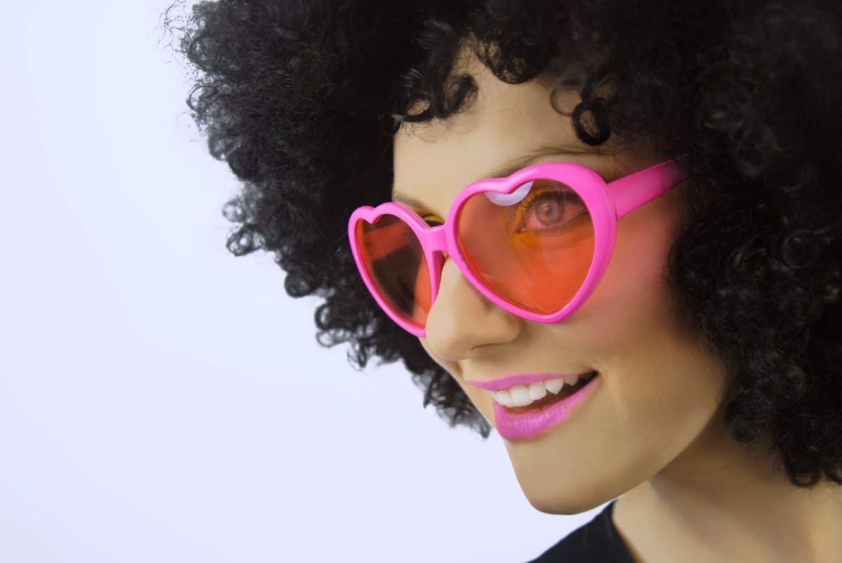 Bril Harten, roze, maat: breedte van het montuur 14 centimeter, hoogte van het montuur 6 centimeter, lengte van de slapen 13 centimeter.