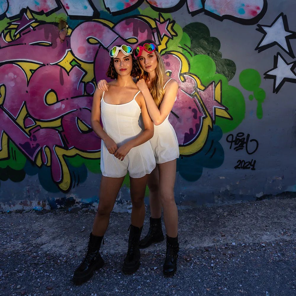 Of iemand nu helemaal los gaat op een festival, tot in de late uurtjes doorgaat tijdens de après-ski of tijdens carnaval verkleed gaat in een leuk retro skipak, deze witte hartvormige skibril is een must-have! De unieke skibril is een speelse accessoire om een festival of party outfit naar the next level te brengen.