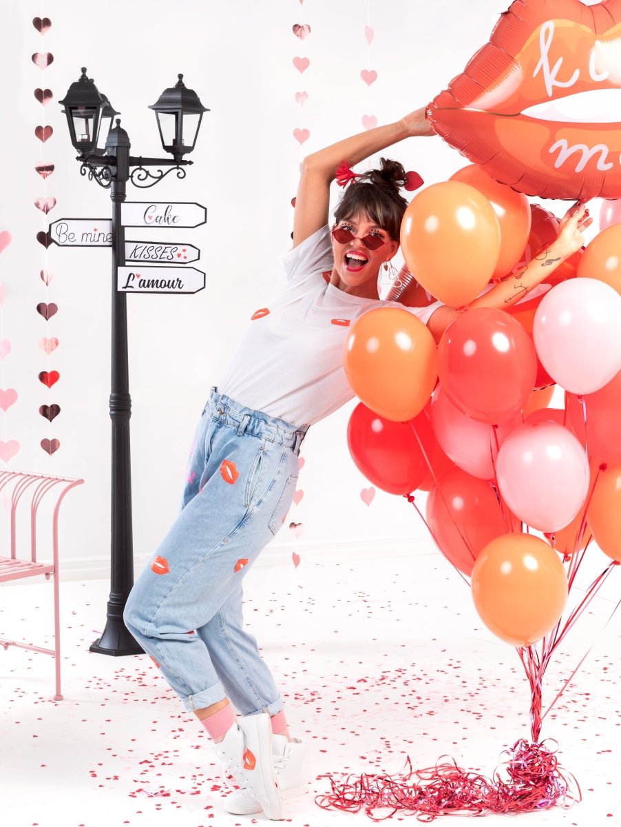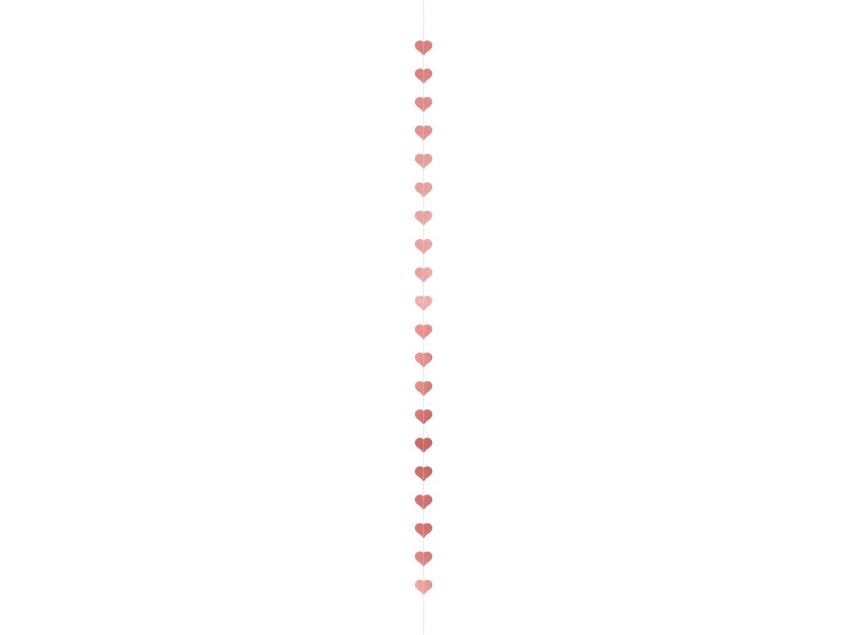 Genaaide slinger Harten in rosegoudkleur, gemaakt van papier, lengte ca. 3,5 m, breedte ca. 8 cm.