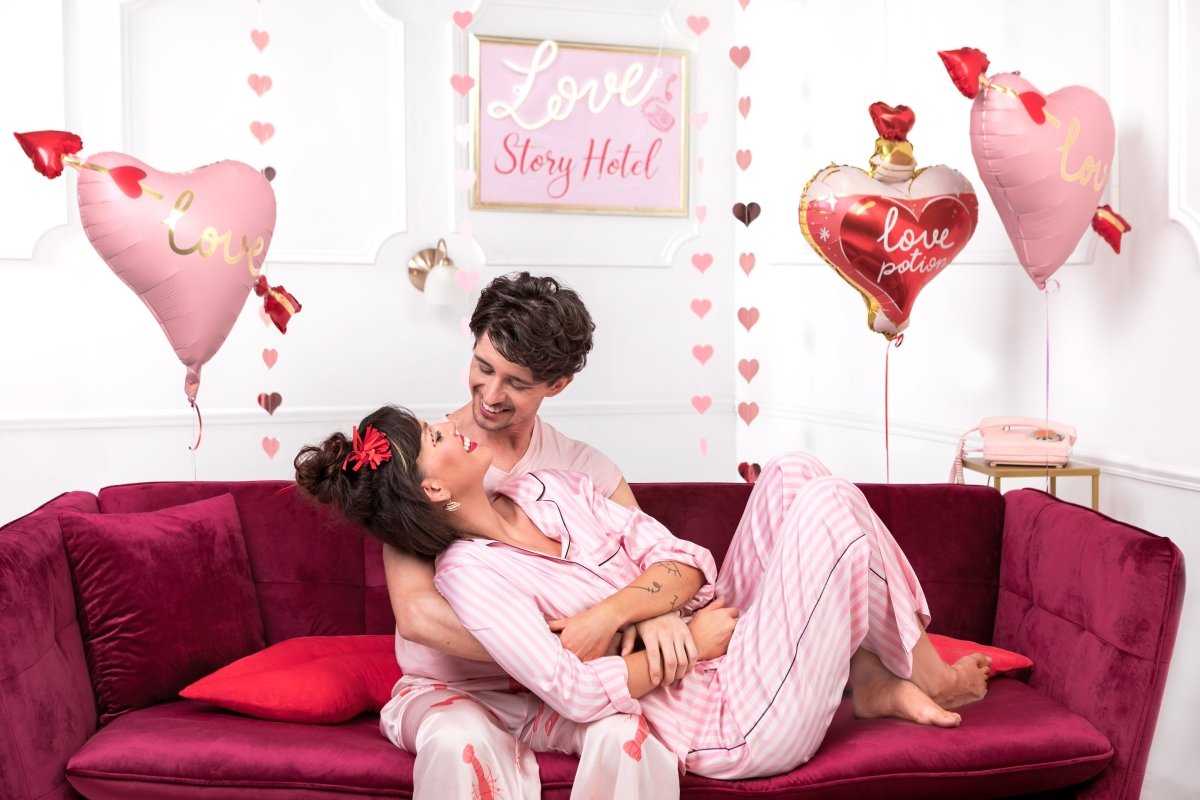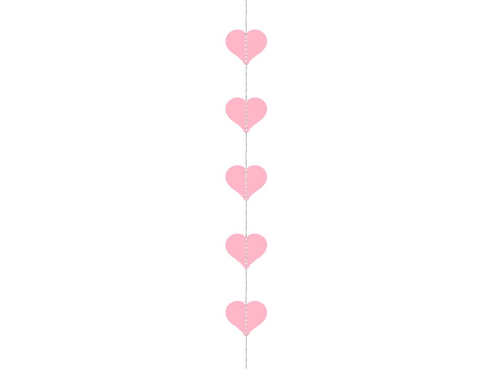 Genaaide slinger Harten in roze kleur, gemaakt van papier, lengte ca. 3,5 m, breedte ca. 8 cm.