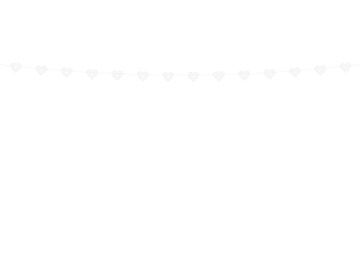 Inhoud: Genaaid krans Harten van papier in de kleur wit, lengte ong. 1,8 m, hoogte ca. 8 cm.