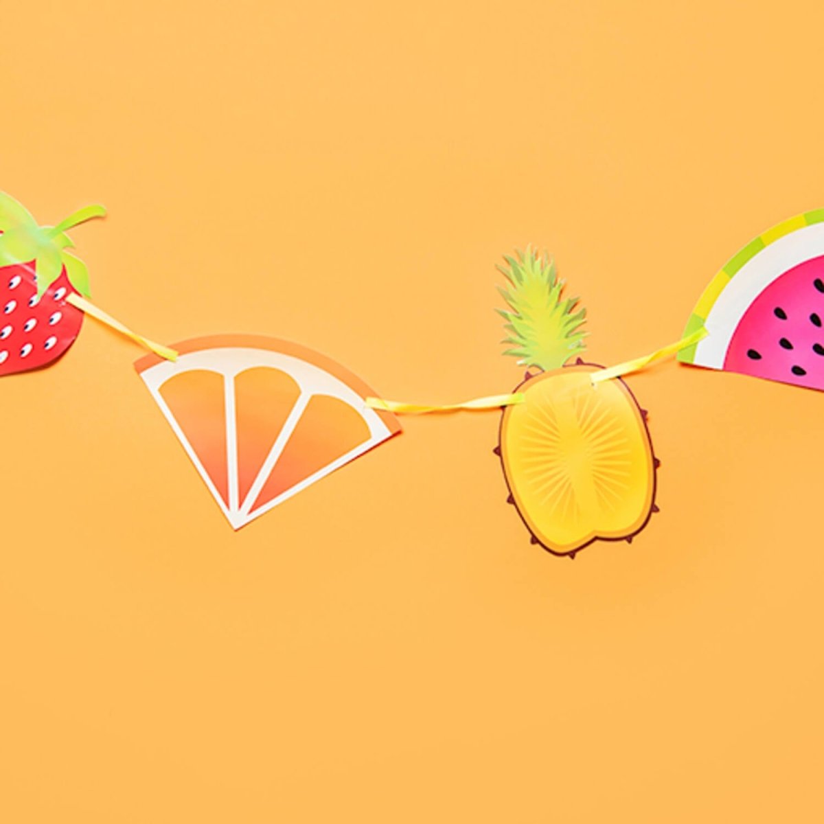 Tropisch Fruit Vlaggenlijn - 6 meter. Inhoud: 1 papieren slinger. Kleur: Meerkleurig. Bijvoorbeeld te gebruiken tijdens de volgende feestgelegenheid/feestgelegenheden: Verjaardag, Kinderfeestje en Themafeest. Deze slinger is 6 meter lang. Het artikel is gemaakt van papier.