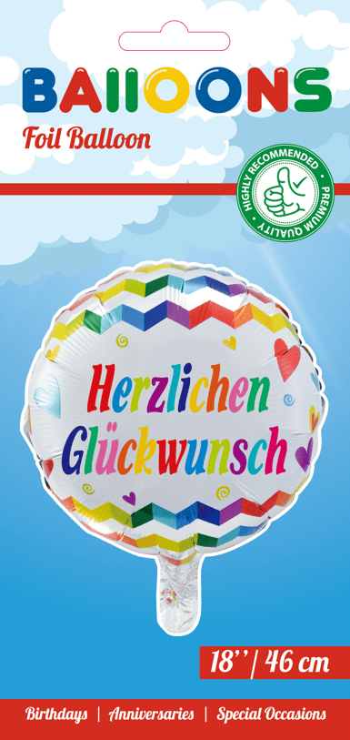 Helium Ballon Herzlichen Glückwunsch 45cm leeg