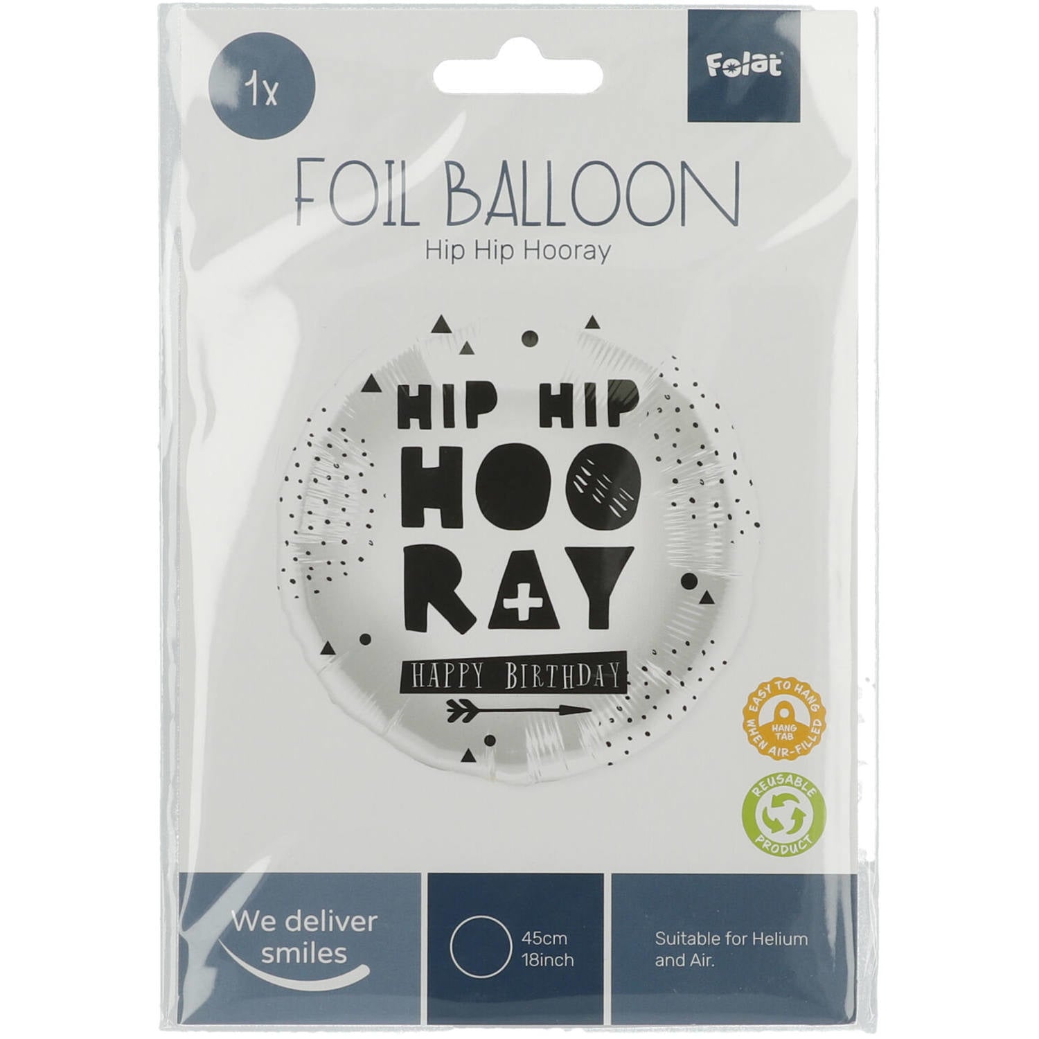 Helium Ballon Hip Hip Hooray Zwart Wit Leeg 45cm