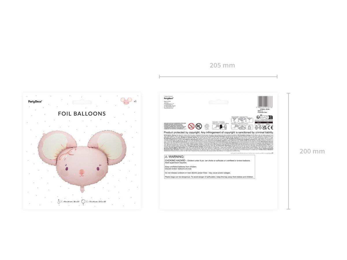 Mouse folieballon, roze, afmetingen voor opblazen ca. 96 x 64 cm (38 x 25''), afmetingen na opblazen ca. 75 x 46 cm (29,5 x 18''). Te vullen met helium. De set is inclusief een rietje.