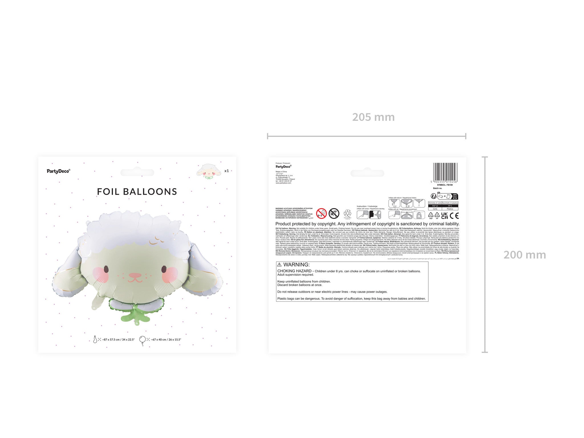 Folieballon Schaap, diverse kleuren, afmetingen voor opblazen ca. 87 x 57,5 cm (34 x 22,5''), afmetingen na opblazen ca. 67 x 40 cm (26 x 15,5''). Op te blazen met lucht en helium. De set is inclusief een rietje.