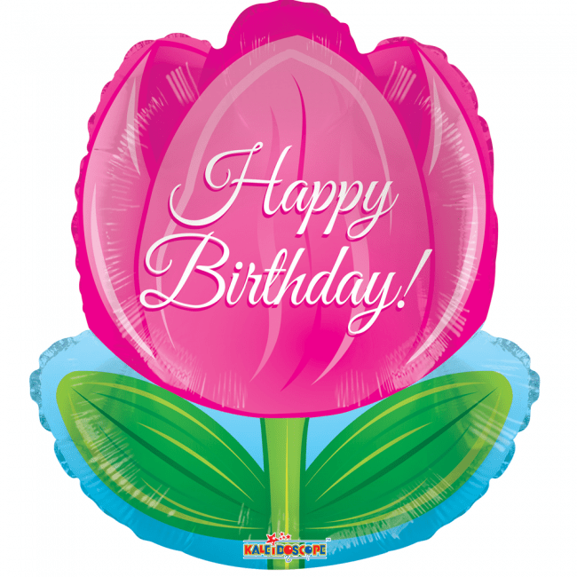 Helium Ballon Tulp Happy Birthday 45cm leeg