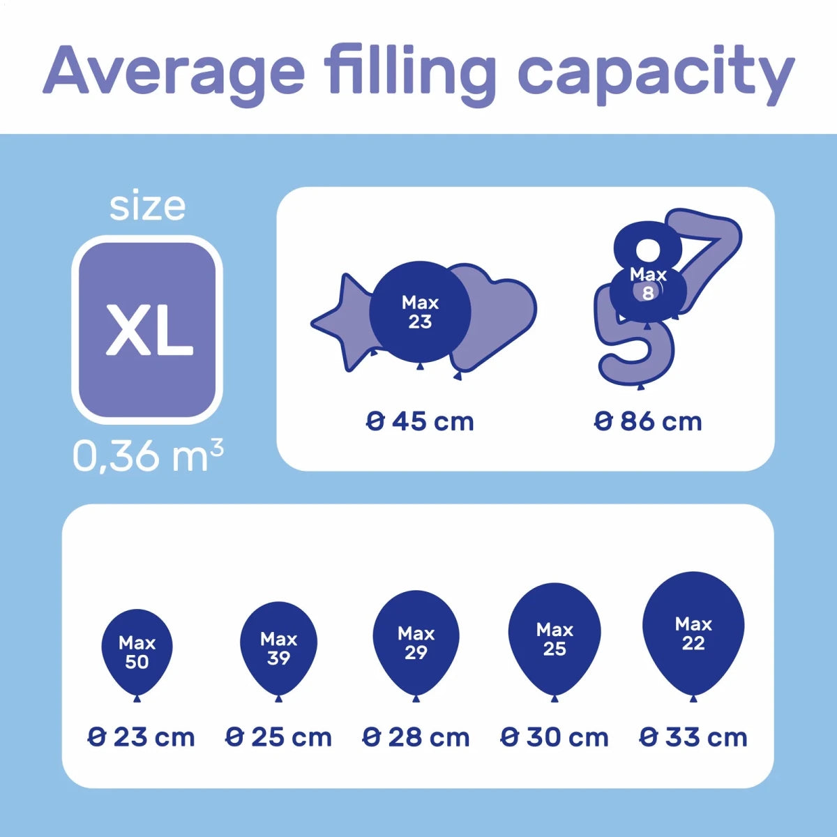 Elke centimeter die een ballon groter is, heeft invloed op de inhoud. De helium tanks zijn gebaseerd op 25cm ballonnen, wanneer je bijvoorbeeld 30cm ballonnen gebruikt kun je slechts de helft van het aantal stuks uit de tank halen.