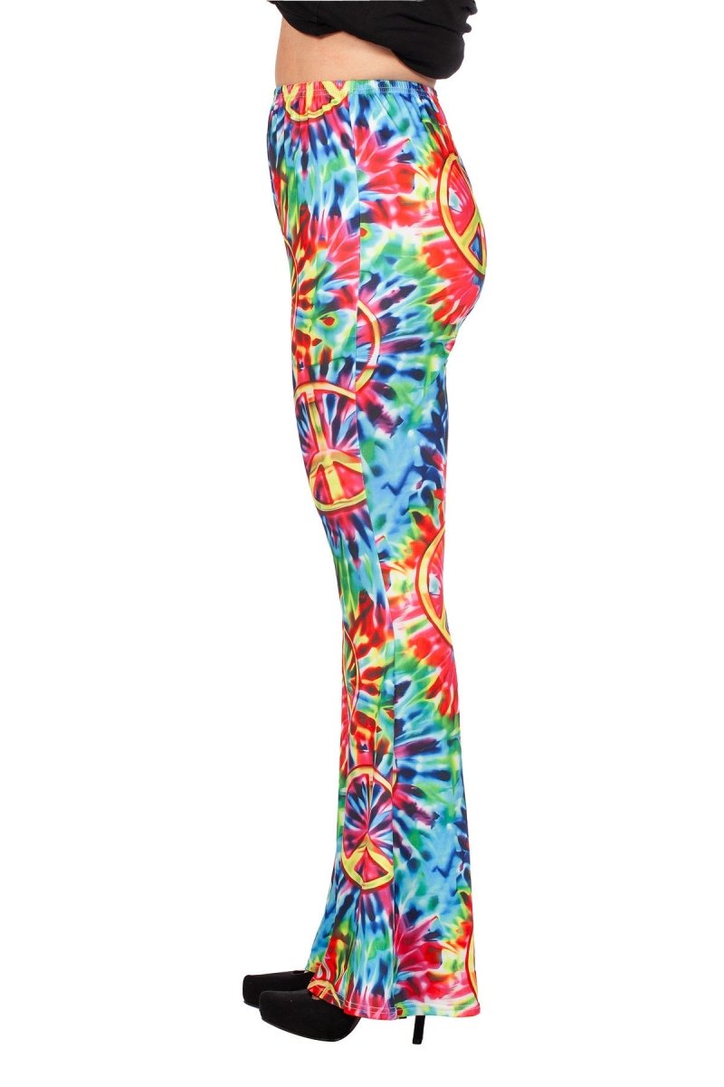 Breng een kleurrijke en retrostijl tot leven met deze hippiebroek in peace tie-dye. Ideaal voor themafeesten, carnaval of een creatieve festivaloutfit.