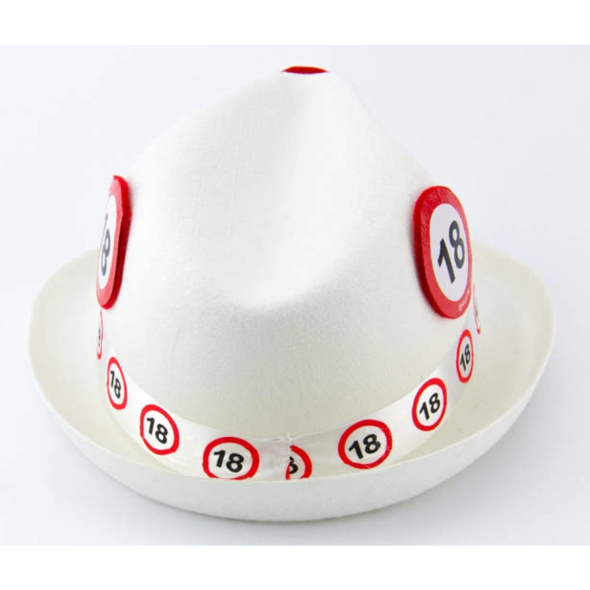 18 Jaar Wit Trilby Hoedje Verkeersbord. Inhoud: 1 hoed, kleur: Wit. Bijvoorbeeld te gebruiken tijdens de volgende feestgelegenheid/feestgelegenheden: Carnaval, Themafeest, Halloween. Deze hoed is 23 cm breed en 37cm hoog. Het artikel is gemaakt van polyester.