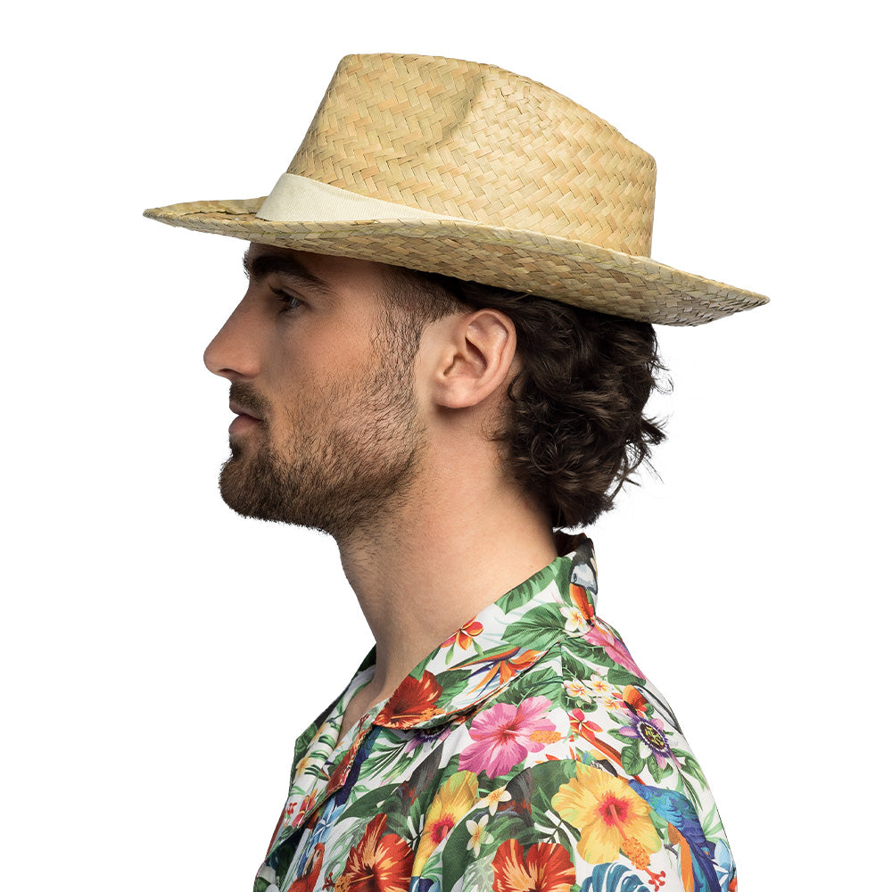 Deze zomerse trilby hoed met witte band geeft elke outfit direct een stijlvolle en zonnige uitstraling. Perfect voor carnaval, Hawaiiaanse themafeesten, beach party’s of elke gelegenheid waar een frisse zomerlook gewenst is. Dankzij het lichte materiaal blijft de hoed comfortabel, zelfs op warme dagen.