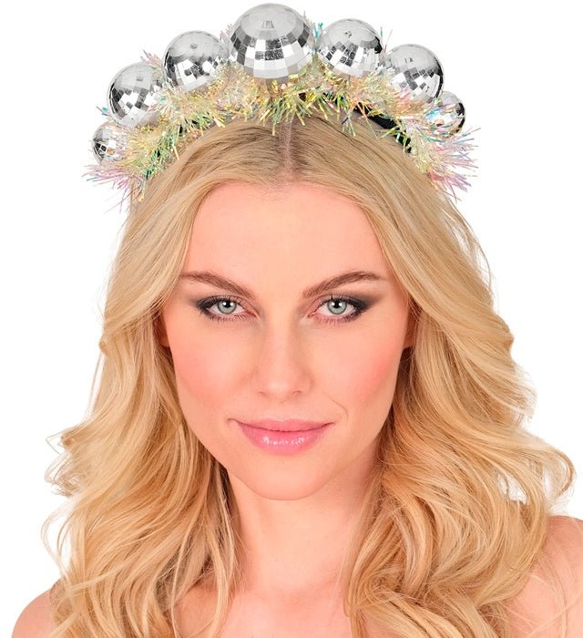 De Hoofdband Disco Ballen met Sliertjes is een vrolijk en opvallend accessoire dat perfect past bij feest- en thema-outfits. De discoballen in combinatie met de speelse sliertjes zorgen voor een echte disco-uitstraling en maken elke look direct compleet.