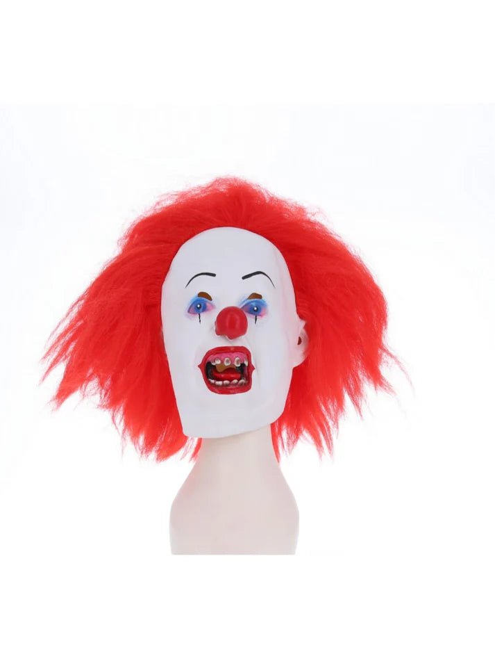 Dit full-head Pennywise masker van latex biedt een direct herkenbare en griezelige uitstraling, perfect voor een opvallende en speelse horrorlook.