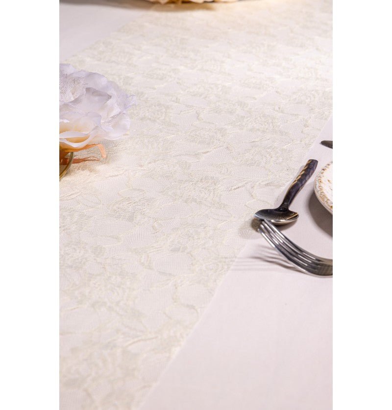 Ivoorkleurige Tafelloper Roses 5m