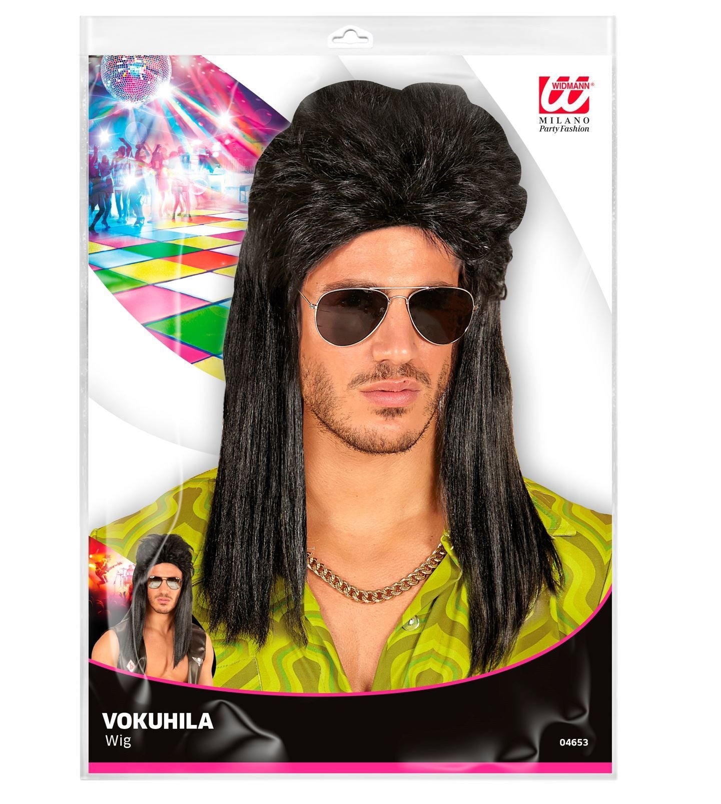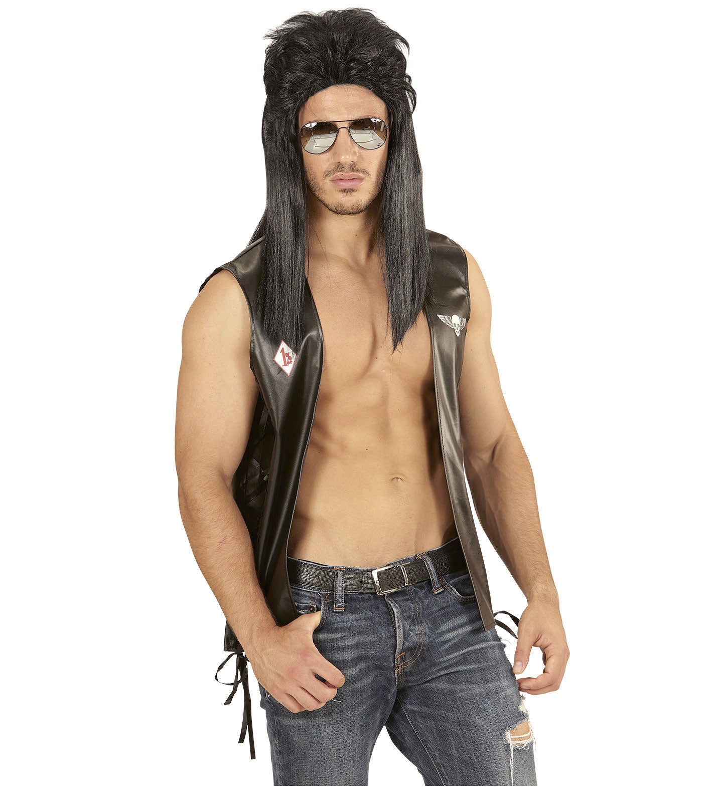 Omschrijving: Jaren 80 Pruik Aso Lang Zwart