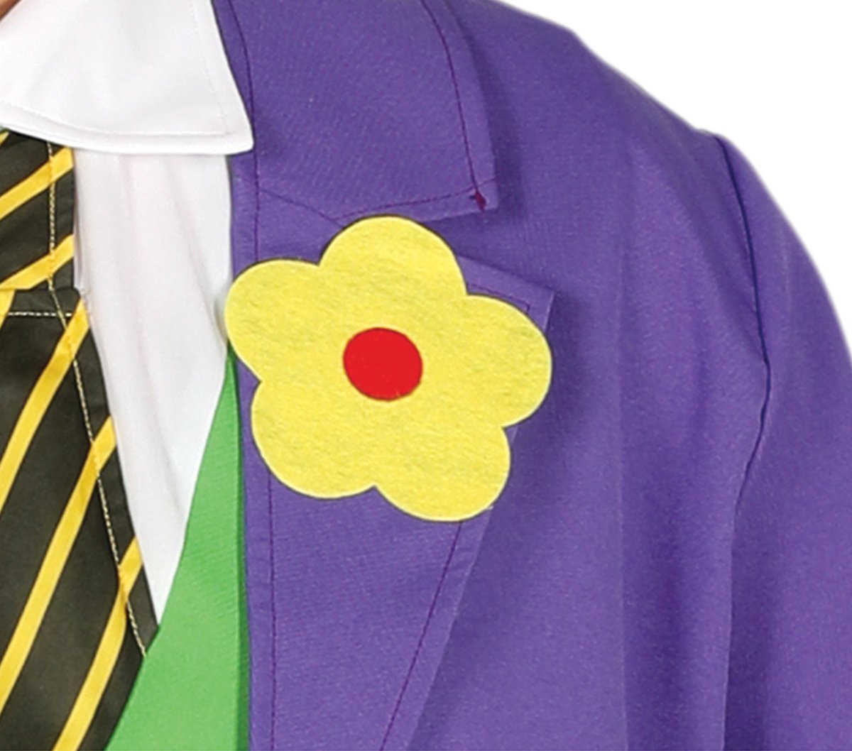 Inhoud: super schurk clown jas, gilet met shirt en stropdas