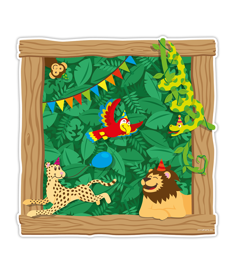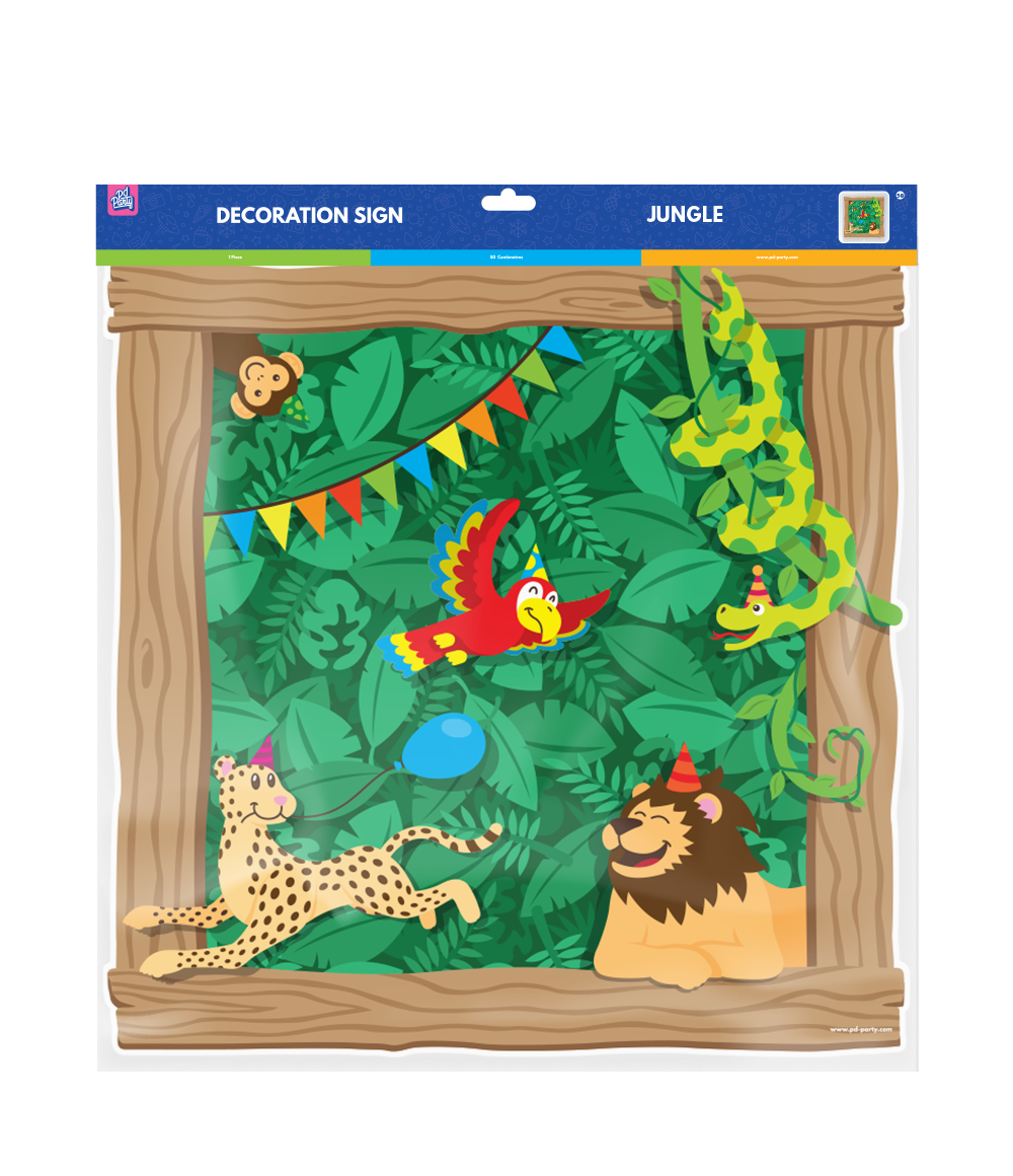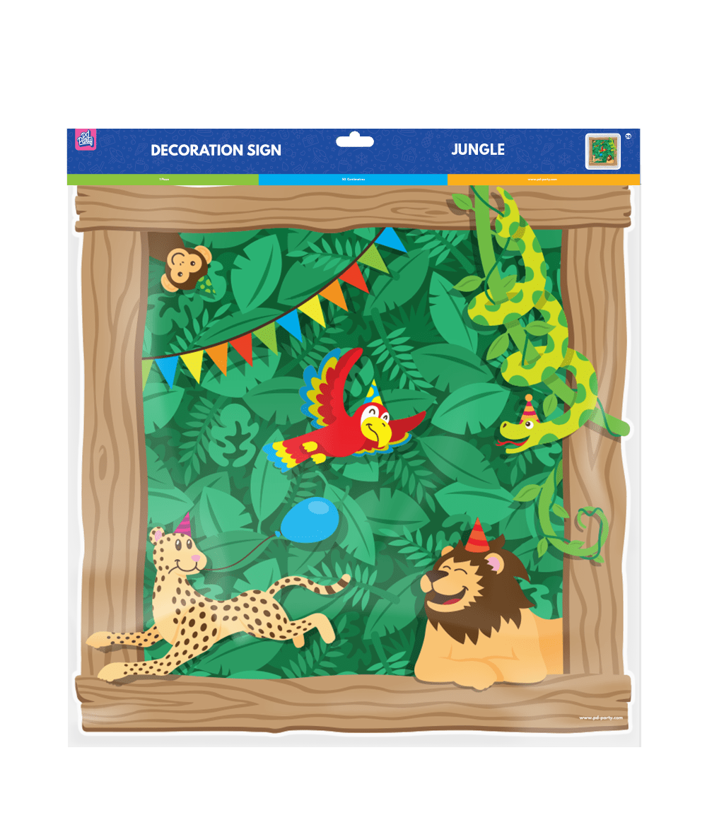 Dit grote huldeschild met jungle thema is met 50 x 50 centimeter de perfecte decoratie aan deuren en ramen. Je ziet meteen waar er iets te vieren valt!