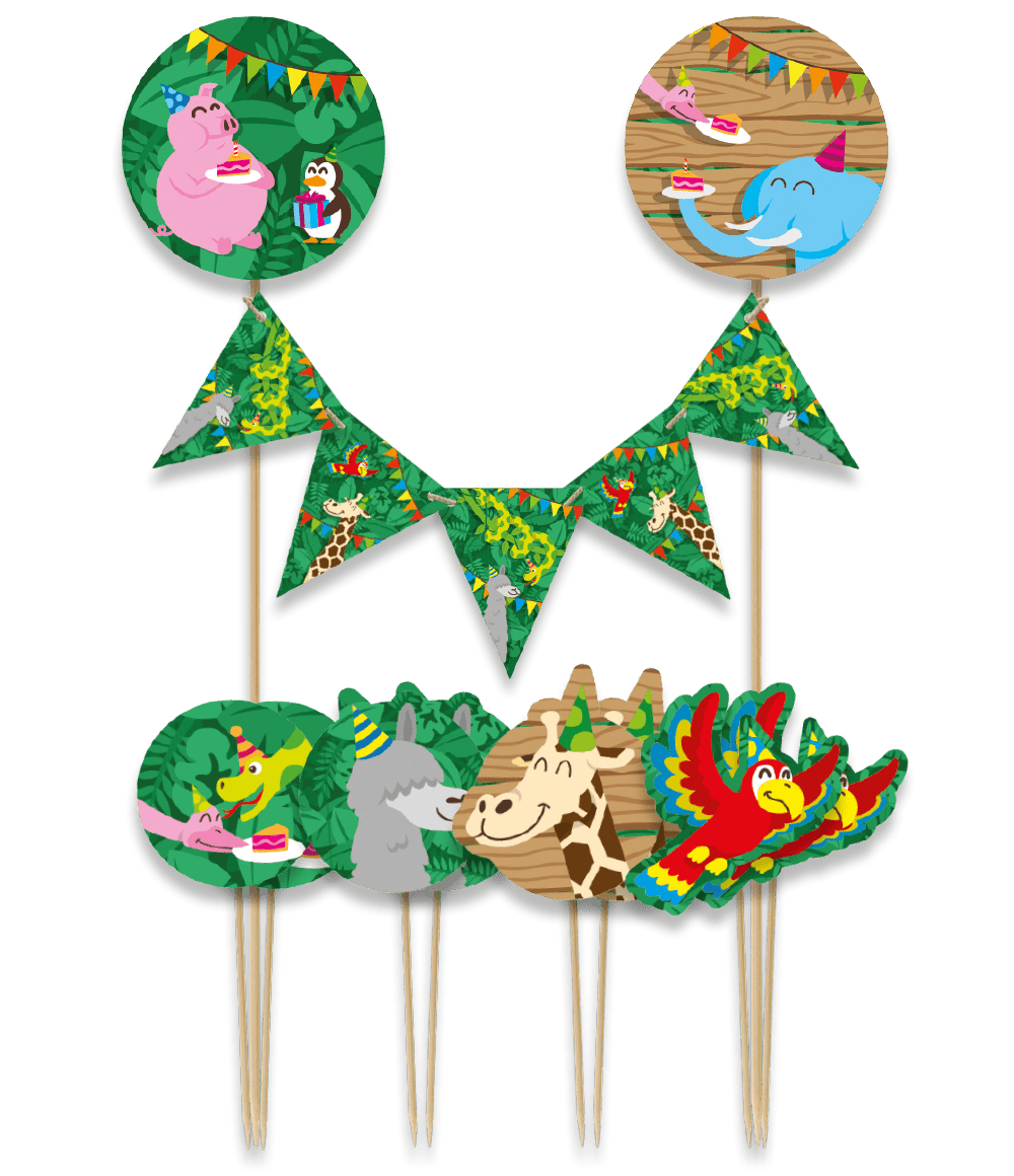 Maak van elke taart een ware blikvanger met deze cake decorations Jungle! Op een kinderverjaardag is dit de perfecte decoratie in een taart. De prikkers zijn eenvoudig in de taart of cake te plaatsen voor een opvallend effect.