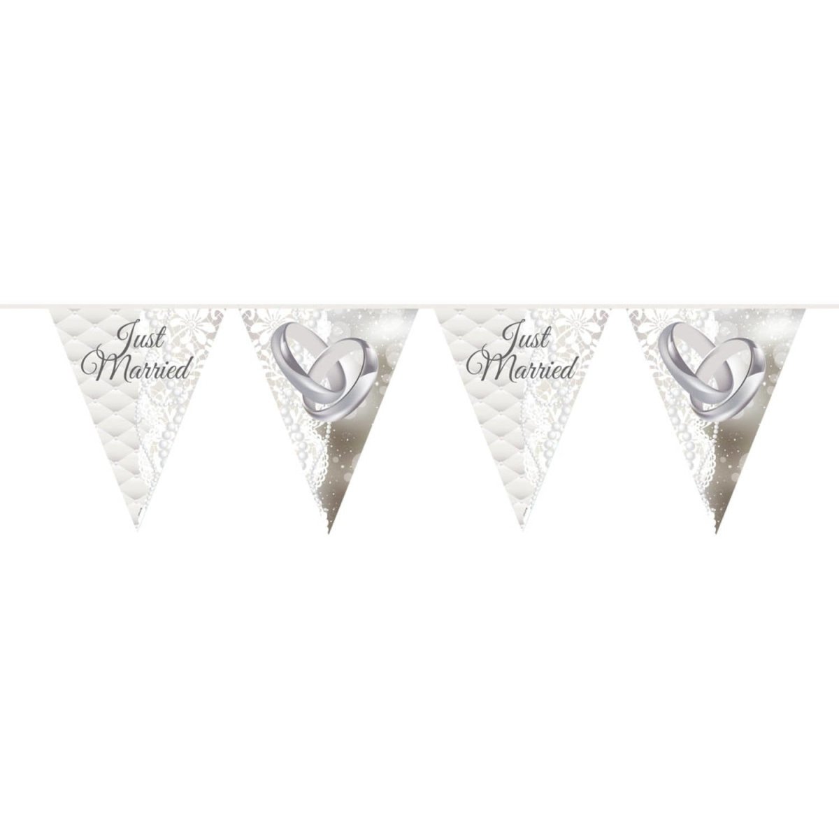 Just Married Bruiloft Vlaggenlijn - 10 meter. Inhoud: 1 vlaggenlijn. Kleur: Zilverkleurig. Productthema: Bruiloft Just Married. Bijvoorbeeld te gebruiken tijdens de volgende feestgelegenheid/feestgelegenheden: Bruiloft. Deze slinger is 10 meter lang. Het artikel is gemaakt van plastic.