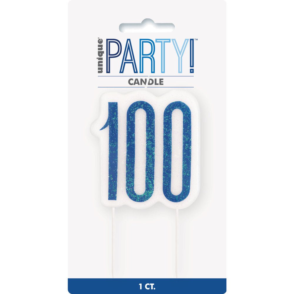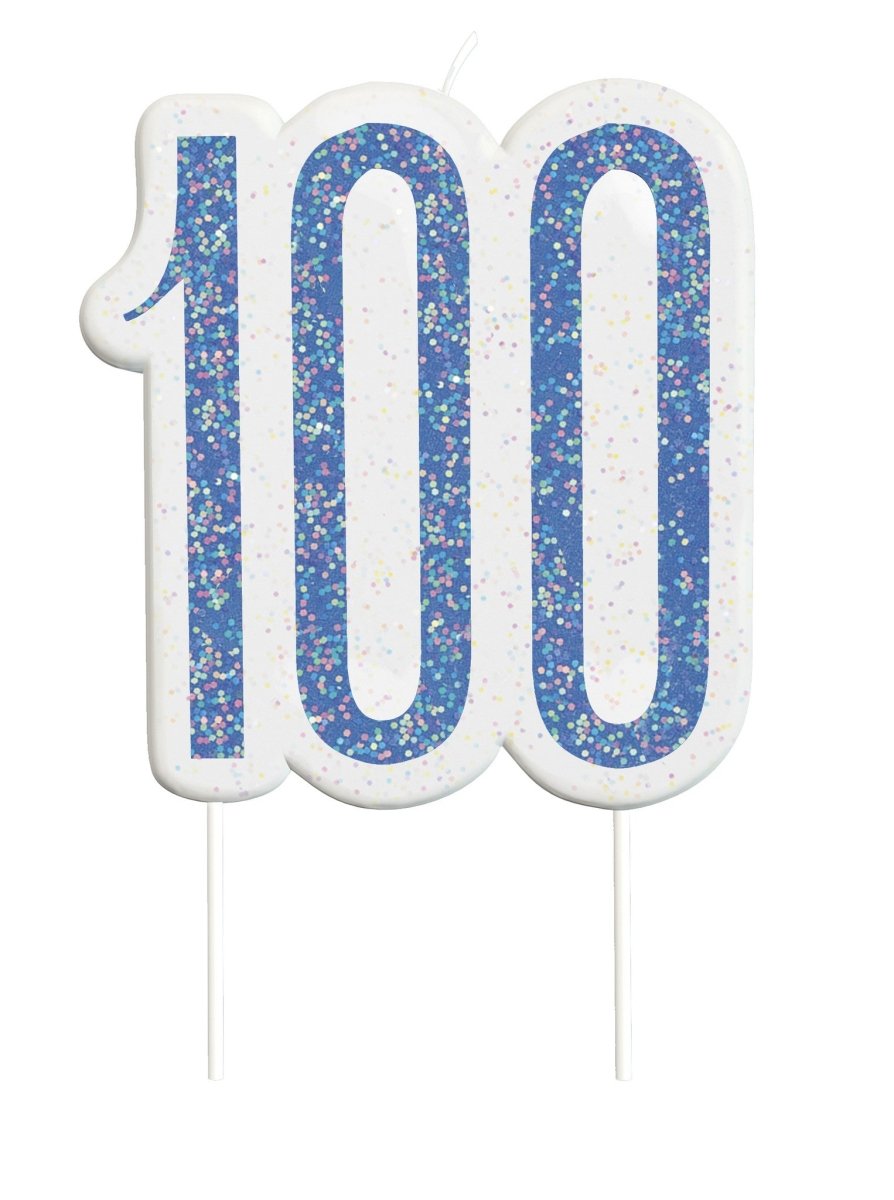 Kaars 100 Jaar Glitter Blauw 8,5cm