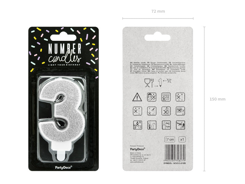 Kaars 3 Jaar Zilver 7cm