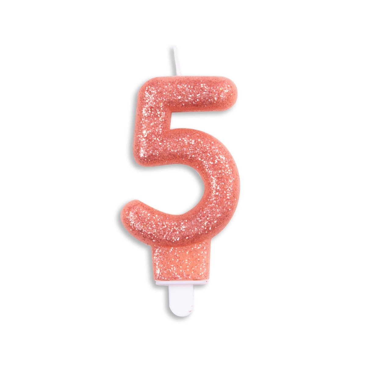 Kaars 5 Jaar Rose Goud Glitter 7cm