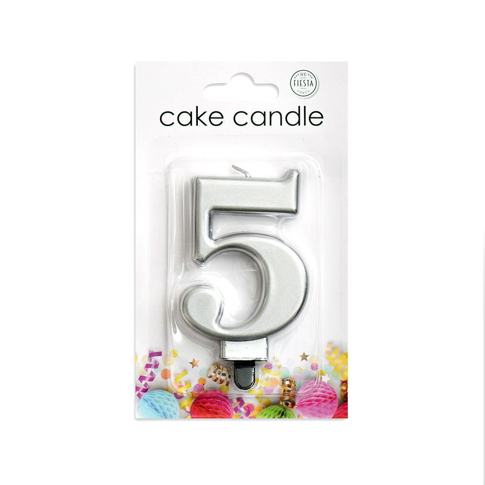 Verpakkingsinhoud: Kaars 5 Jaar Zilver Metallic 8cm