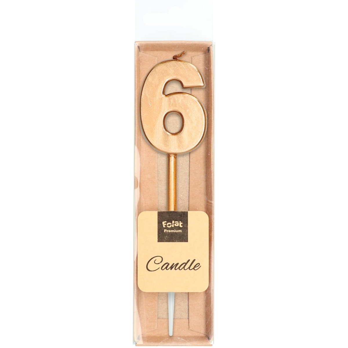 Kaars Cijfer 6 Brons Metallic. Inhoud: 1 kaars. Kleur: Brons. Bijvoorbeeld te gebruiken tijdens de volgende feestgelegenheid/feestgelegenheden: Verjaardag, Jubileum en Kinderfeestje. Afmetingen: 14 cm hoog. Het artikel is gemaakt van wax.