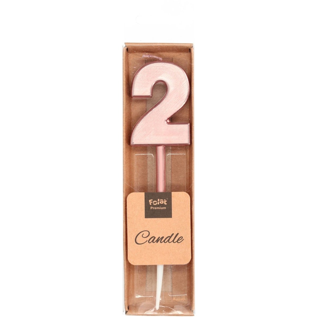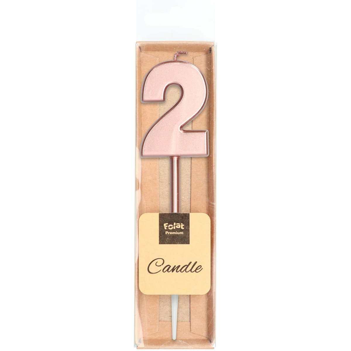 Kaars Cijfer 2 Rose Goud Metallic 15cm