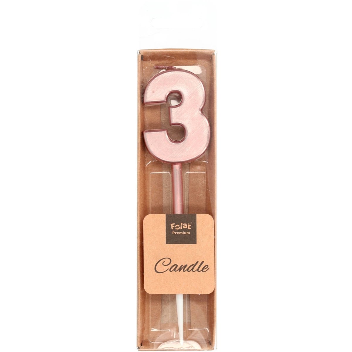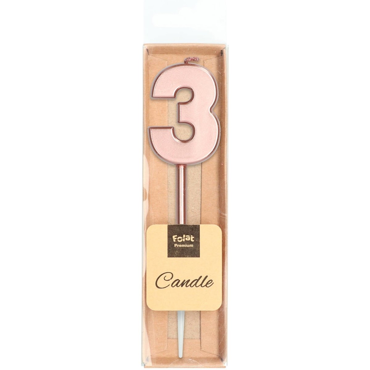 Kaars Cijfer 3 Rose Goud Metallic 15cm