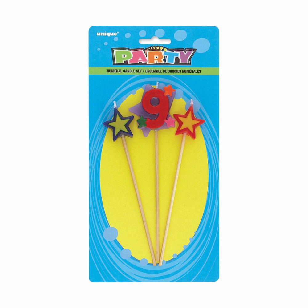 Kaarsen Set 9 Jaar Sterren 26cm 3st